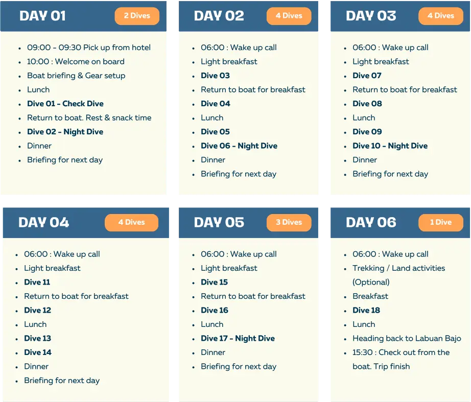 some plans may change during the trip. The total number of dives each day may also vary.